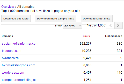 Nếu bạn nhận đuợc cảnh báo hoặc bị phạt thì webmaster tool là nơi để tìm ra các liên kết xấu. Chỉ cần vào traffic/links to your site bạn sẽ thấy đuợc những website nào liên kết đến mình nhiều nhất. Tại đây bạn sẽ thấy những tên miền website nào liên kết đến website của mình, bao nhiêu link, bao nhiêu trang trên website của họ liên kết tới website của bạn.